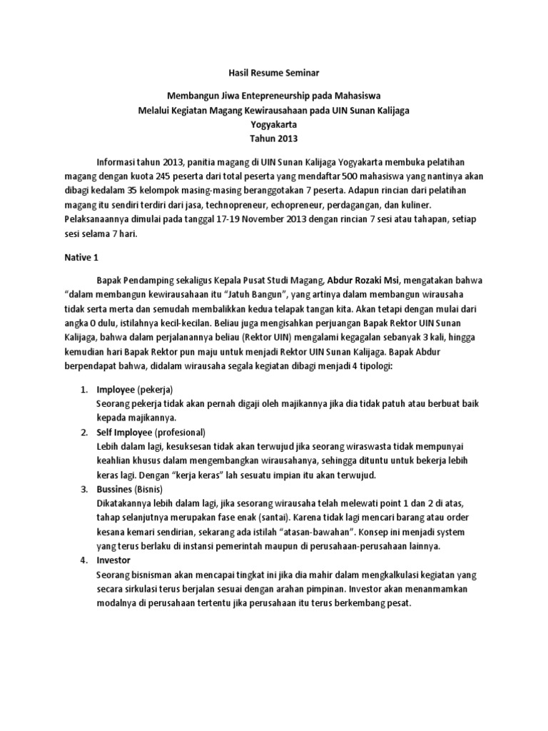 2 Contoh Resume Seminar Yang Baik Lokerpintar Id